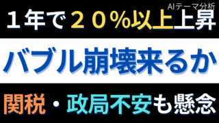 AIテーマ分析 日本株のバブル評価と1か月短期リスク:市場の二極化と日銀会合の行方 現在の日本株市場が「バブル」状態にあるのか、そして短期的に「暴落」リスクを抱えているのかという問いは、投資家にとって最も重要なテーマである。結論から言えば、市場は一部の過熱セクターと依然として割安なバリューセクターが混在する「二極化」の状況... 2025.10.13 AIテーマ分析