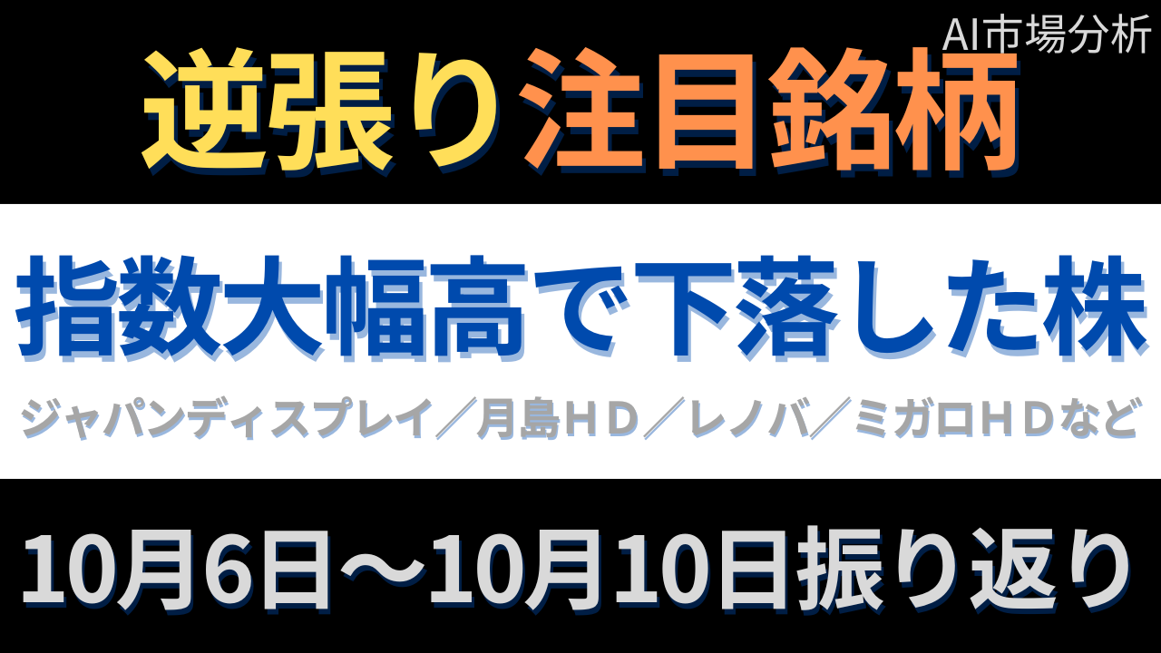 2025年10月上旬の相場は、政局期待による全体株高と、個別銘柄における構造的な問題や需給悪化が鮮明に分かれた一週間でした。週間・月間ランキングを通じて確認できた急落要因は、不適切会計、公募増資、大株主の持ち合い解消、決算後の失望売り、そして短期的な過熱の反動安といった多岐にわたる個別材料です。