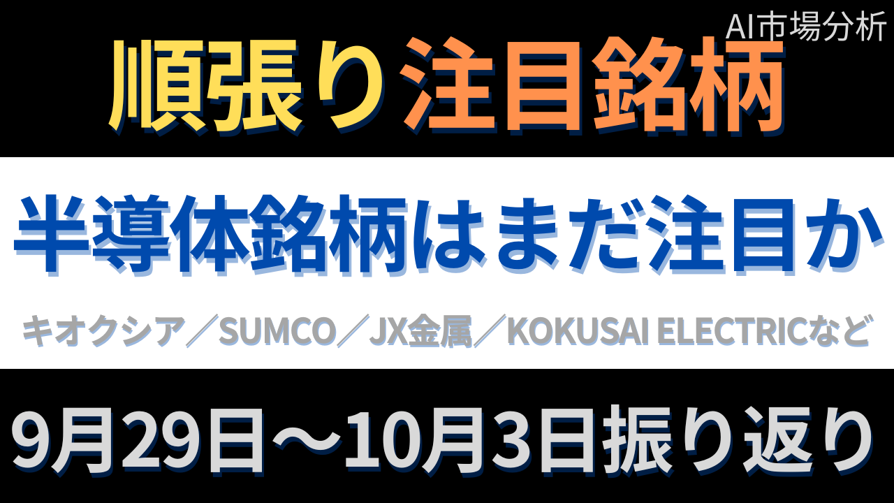 - 変動要因: ハイテク主導の相場において、主力半導体製造装置メーカーとして買いが優勢となり、10月3日も指数を押し上げました。
