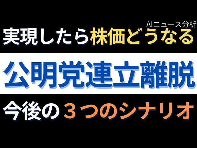 日本の政局は高市新総裁の誕生を機に、自民の保守回帰と公明の平和主義という理念ギャップが顕在化しました。20年以上続いた自公体制は転換点に差し掛かり、市場は「公明党の連立離脱」を単発イベントではなく、市場レジームの分岐点として受け止めています。